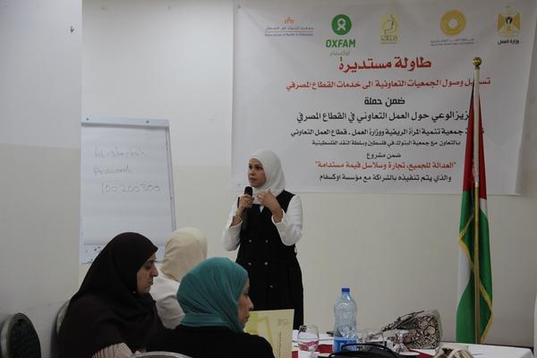 نفذت جمعية تنمية المرأة الريفية بالشراكة مع وزارة العمل / قطاع العمل التعاوني، بالتعاون مع جمعية البنوك في فلسطين وسلطة النقد الفلسطينية بتمويل من مؤسسة أوكسفام، طاولة مستديرة وذلك يوم الأربعاء الموافق 15/10/2025 في فندق سيتي ان/ رام الله. وجاء تنفيذ هذه الفعالية ضمن حملة تعزيز الوعي حول العمل التعاوني في القطاع المصرفي والتي يتم تنفيذها من خلال مشروع "العدالة للجميع: تجارة وسلاسل قيمة مستدامة". وتهدف هذه الحملة إلى المساهمة في حل الإشكاليات التي تواجهها الجمعيات التعاونية في تعاملها مع البنوك، وتسهيل حصولها على الخدمات المصرفية التي تمكّنها من أداء دورها التنموي.